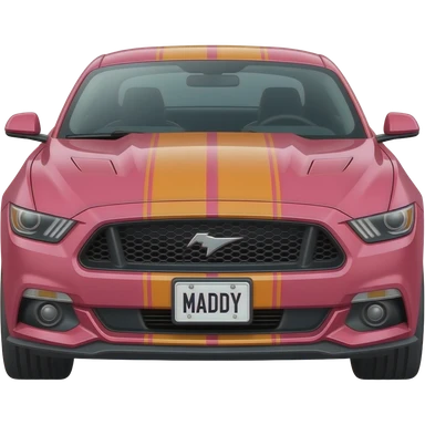Pink and orange mustang with a license plate that says “Maddy” emoji