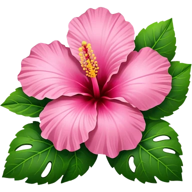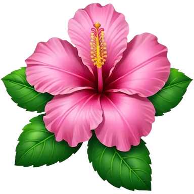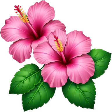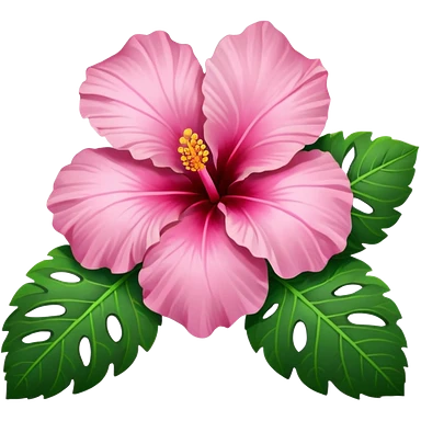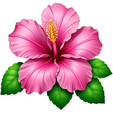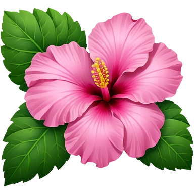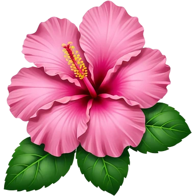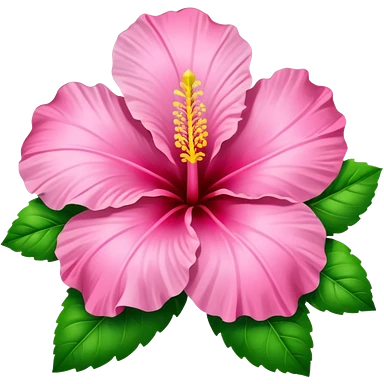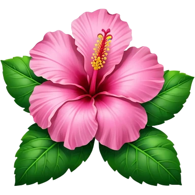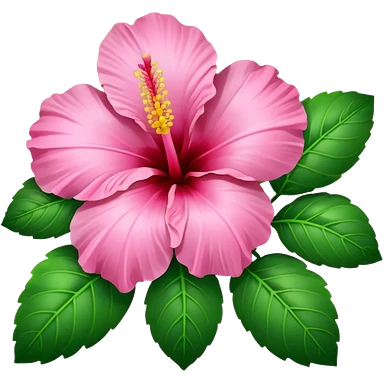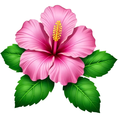 Pink heart hibiscus like a with green leaves emoji