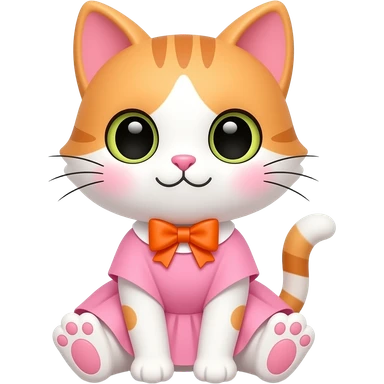 Pinkorangewhite kawaii Easter cat sit pink dress orange bow emoji