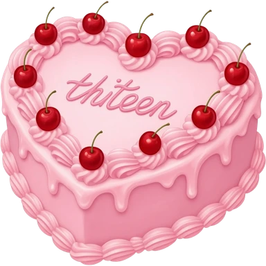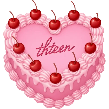 pink vintage heart cake with red cherries on top and thirteen written in cursive in the middle emoji