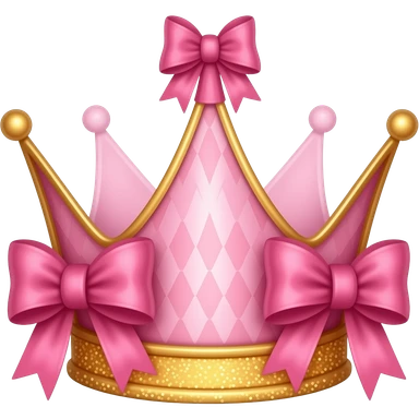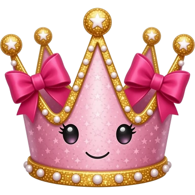 pink coquette cutesy crown hot pink with bows abd gold glitter magical emoji