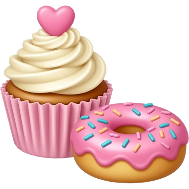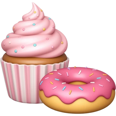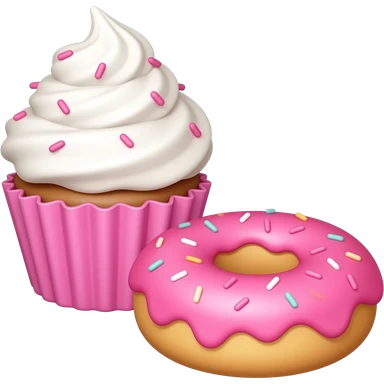 Pink cupcake and donut in the foreground emoji