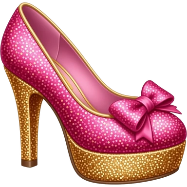 pink coquette cutesy high heel hot pink with bows and gold glitter magical emoji