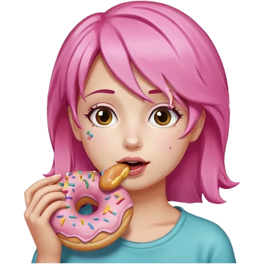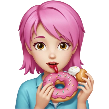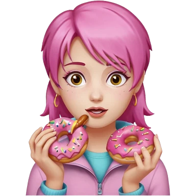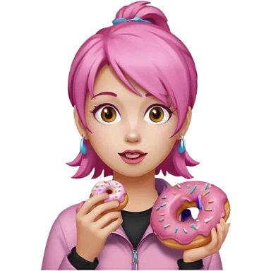 pink hair girl eating donuts emoji
