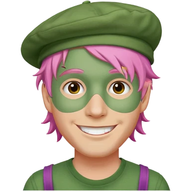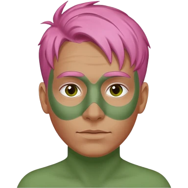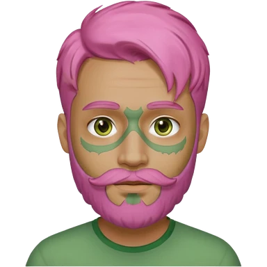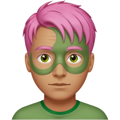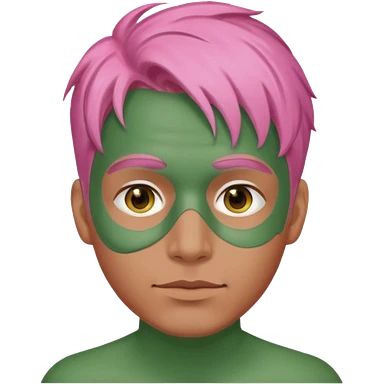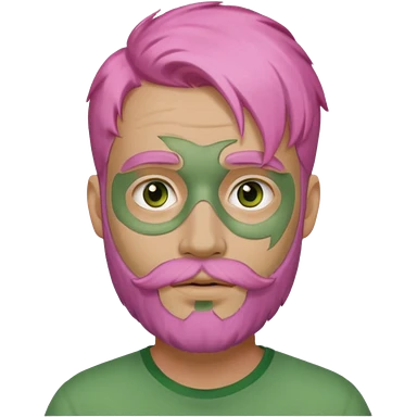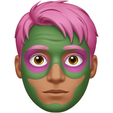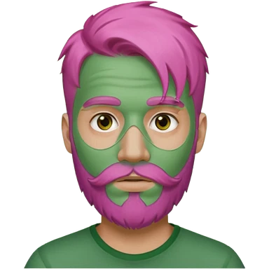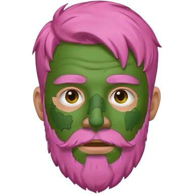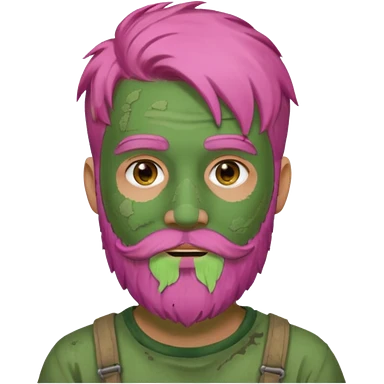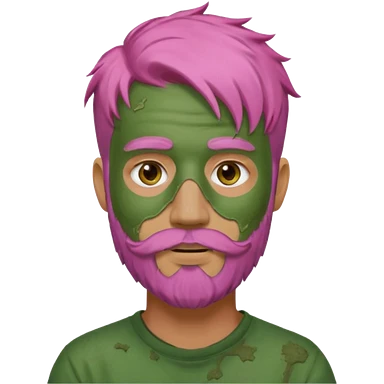 pink haired man with full full face dirty messy green clay mask and beard emoji