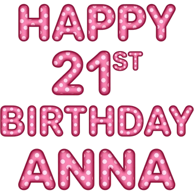 PINK POLKA DOT LETTERS HAPPY 21ST BIRTHDAY ANNA emoji