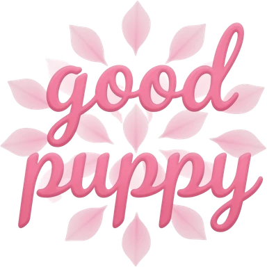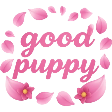 pink feminine text that says good puppy with flower petals around the text emoji