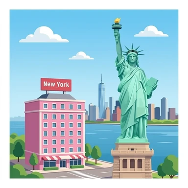 Pink HOTEL Building SignBoard HOTEL in New York Statue of Liberty emoji