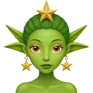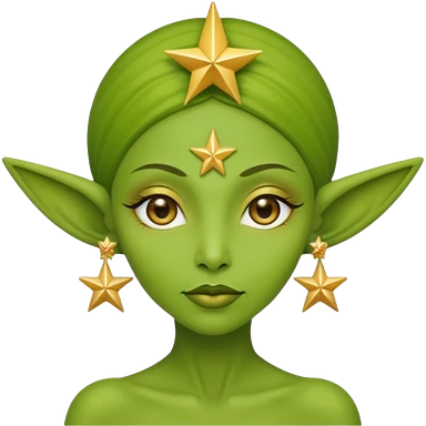green alien woman with golden star earrings emoji