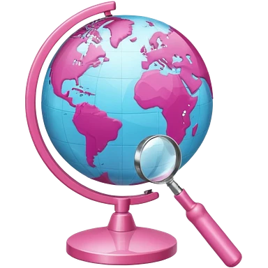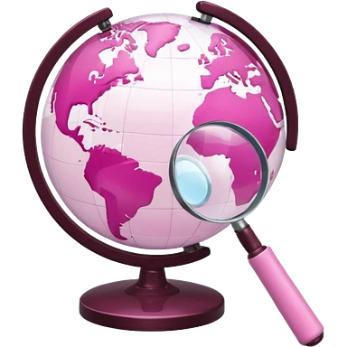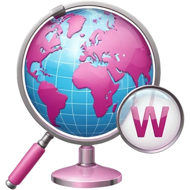 mix light pink dark pink and white girly globe with WWW in big letters under it and a small magnifying glass It looks like an internet bar icon. emoji