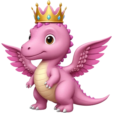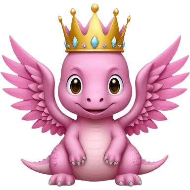 pink baby dinossaur with wings with a crown side view emoji | AI Emoji Generator