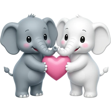 2 Cute elephants holding a a baby pink love heart emoji