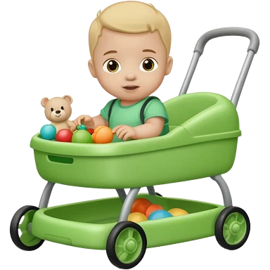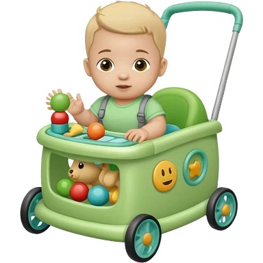 green baby walker with toys on it and on baby emoji
