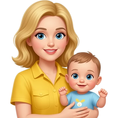 blue eyed blonde mom and baby girl realistic pink emoji