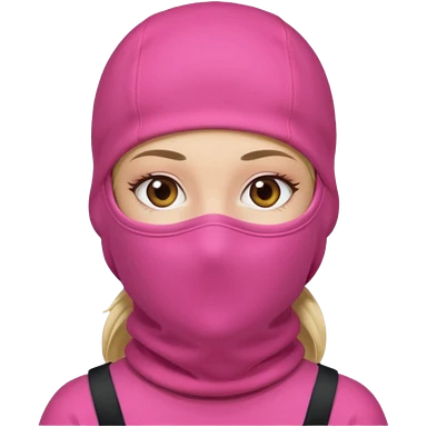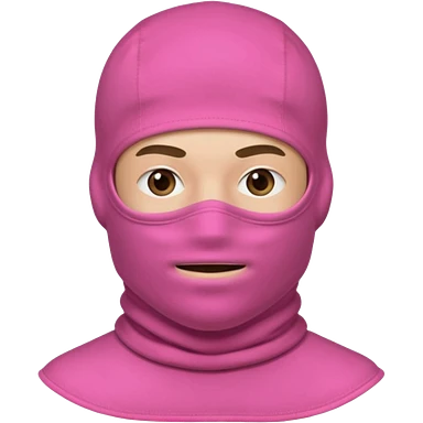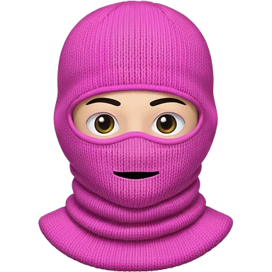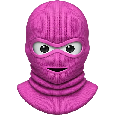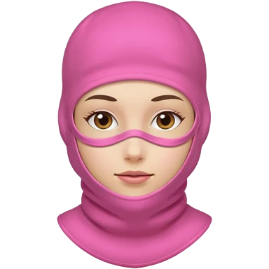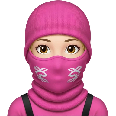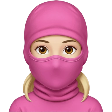 baggy stylish balaclava pink in colour with girly eyes showing through the eye holes of the balaclava with beautiful eyelashes on emoji