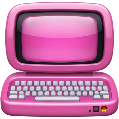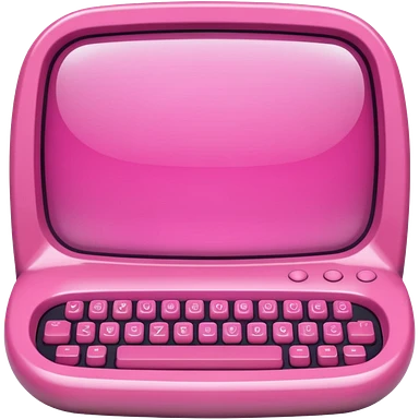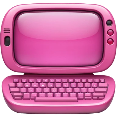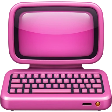 shiny pink translucent 90s computer with CRT monitor, keyboard, PC tower, mouse emoji