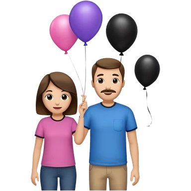 Mom in pink shirt dad in blue shirt holding black baloon happy 1 baloon emoji