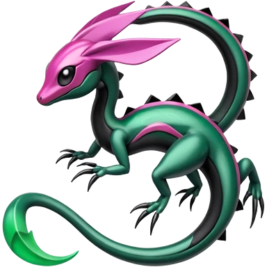 Pink-black-white-gradients Meloetta-Rayquaza-Salandit-Pokémon-Fakémon-creature-fusion-hybrid emoji | AI Emoji Generator