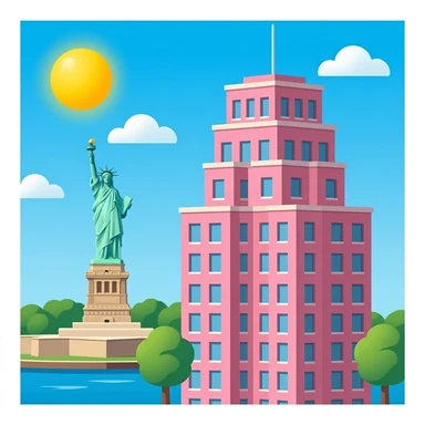 High Pink Building in New York in Central Park statue-of-liberty emoji
