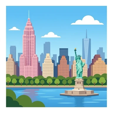 High Pink Building in New York in Central Park Conservancy river lestatue-of-liberty emoji