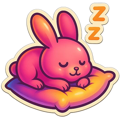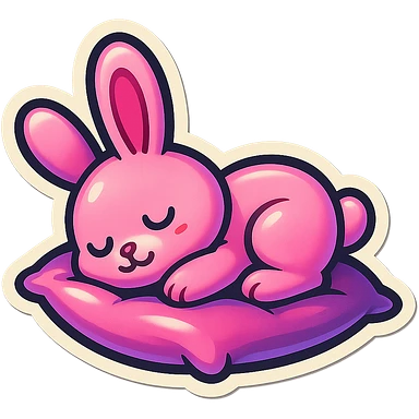 black and pink bunny face, cute and expressive, vintage sticker look emoji