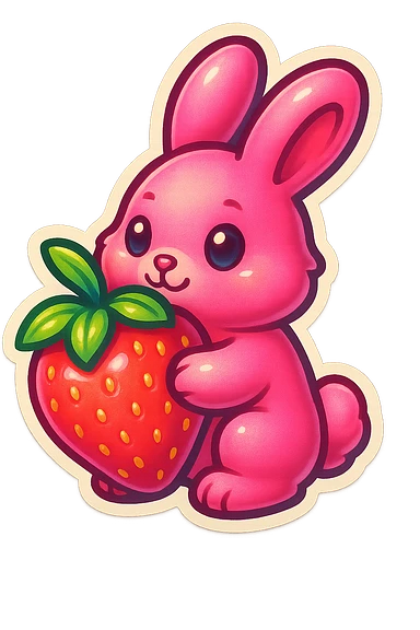 pink bunny holding strawberry emoji | AI Emoji Generator