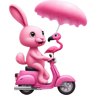 pink bunny and pink flamingo riding pink cotton candy emoji