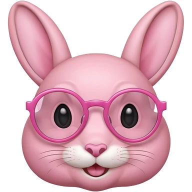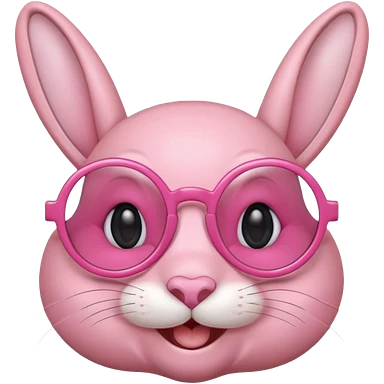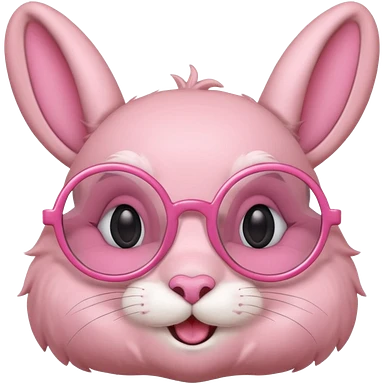 Pink bunny with big circular glasses, smiling. emoji | AI Emoji Generator