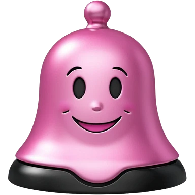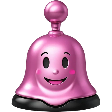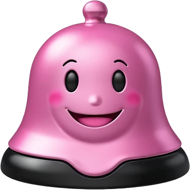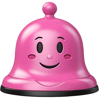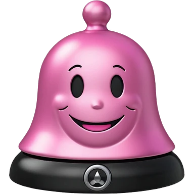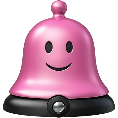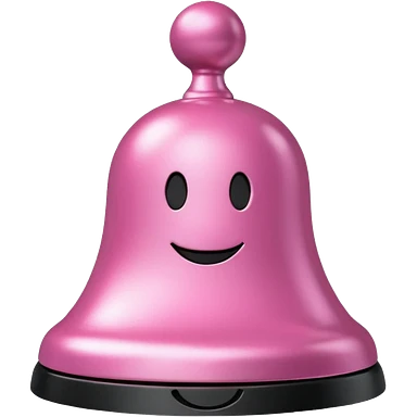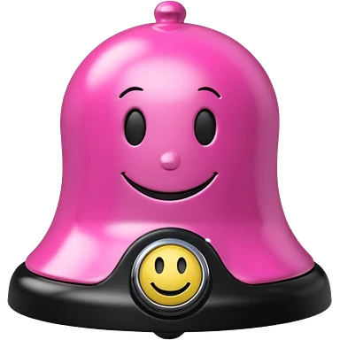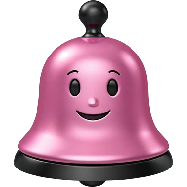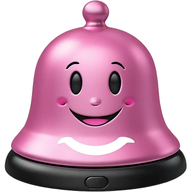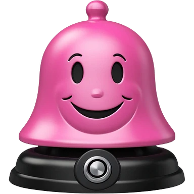 pink call bell with chrome knob on top and black base with smiley face on it emoji