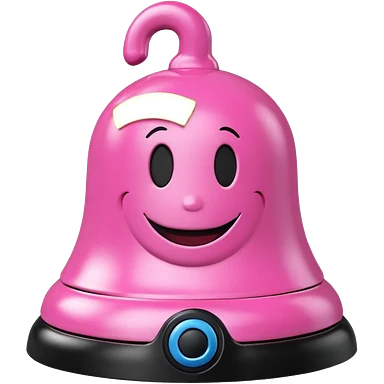 pink call bell with black base and silver knob and with smiley face on it emoji