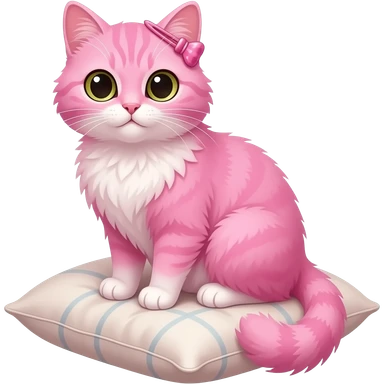 pink cat sitting fluffy with hair pin emoji