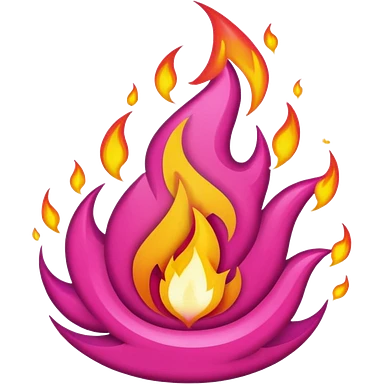 Floating hyper-realistic magenta-pink-white-cyan-gradient ember-flame emoji