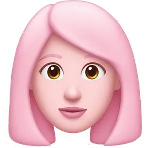 teal-blue hair with pigtails, pink lolipop on the mouth, light pink skin, pink eyes, pink top, pink cat earmuffs emoji