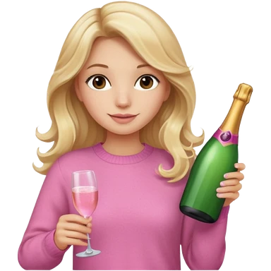 girl with long blonde wavy hair, pink sweater and brown eyes with bottle of pink champagne emoji