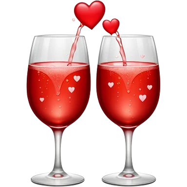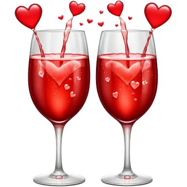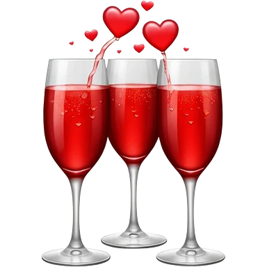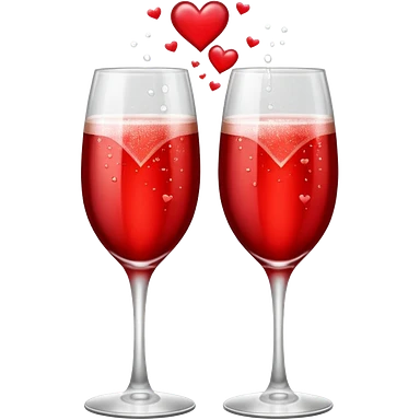 2 red champagne glasses are clinking and 3 red hearts are flying from above emoji