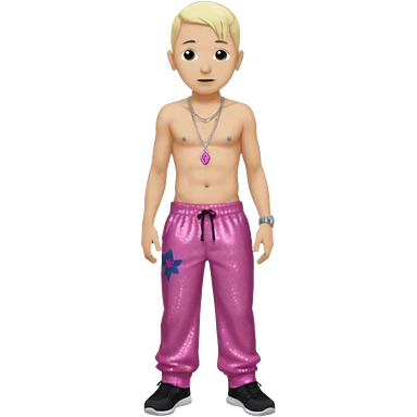 Chester Bennington with blonde hair, dark pink sequin baggy pants, shirtless with necklace emoji