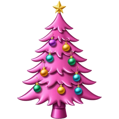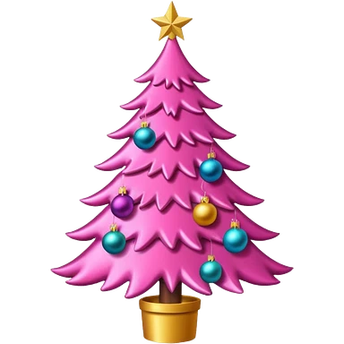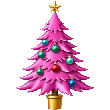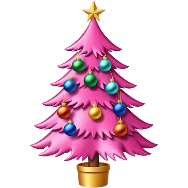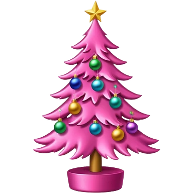 Pink Christmas tree with snow on the branches and a gold star on top no baubles emoji