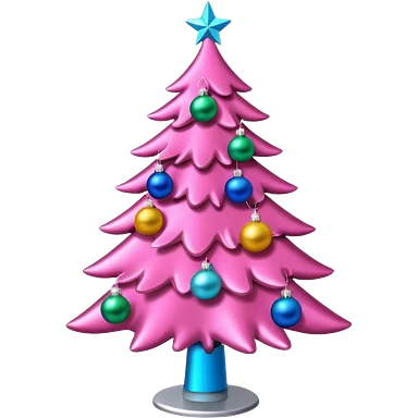 Pink Christmas tree with snow on the branches and a gold star on top emoji