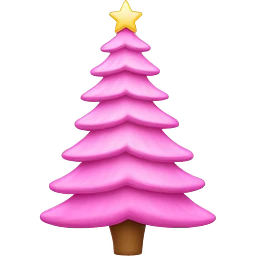 Pink Christmas tree with snow on the branches and a gold star on top emoji