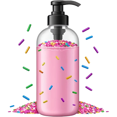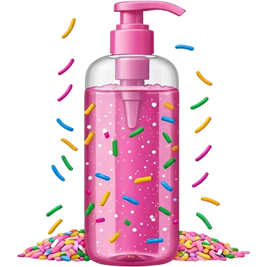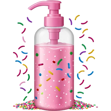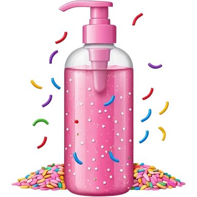 Pink shower gel light pink bottle with sprinkles and confeti on the bottle emoji