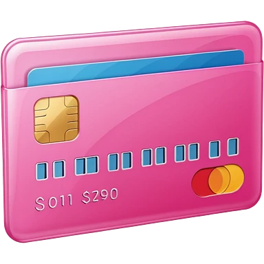 Blush pink credit card with gold chip and silver embossed numbers, minimal design, no logos, soft 3D style. emoji