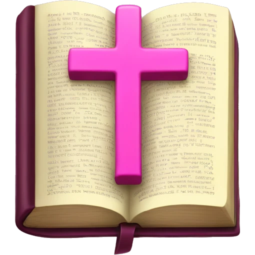 Brunette girl, light skin, holding a light pink Bible with a cross on the cover in one hand and a coffee in the other hand emoji