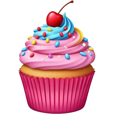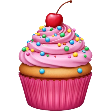 pink cupcake with cherry and sprinkle on top emoji | AI Emoji Generator