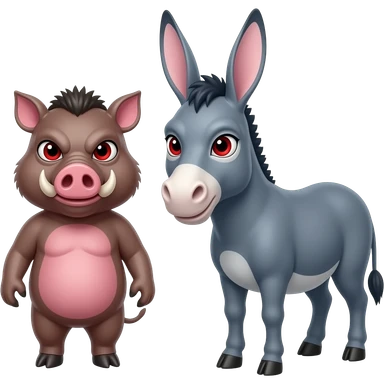 generate a pink wild boar and donkey with a mean face and red eyes emoji