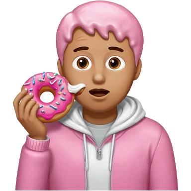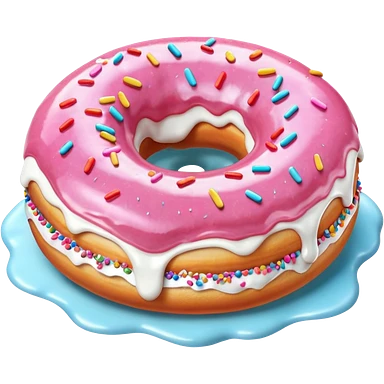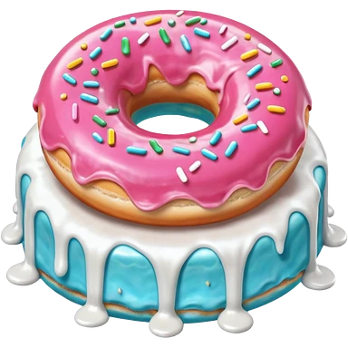 Pink donut with white icing running down and through it emoji | AI Emoji Generator