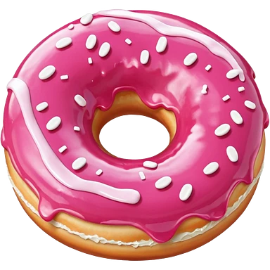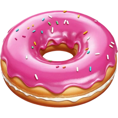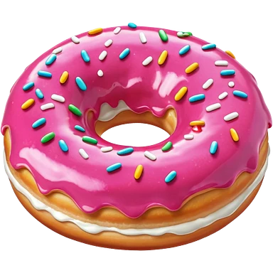 vibrant donut with glossy pink icing and multicolored sprinkles, slight side angle emoji
