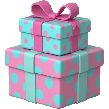 STACK OF THREE BIRTHDAY GIFTS POLKA DOTS PINK NND TURQUIOSE emoji