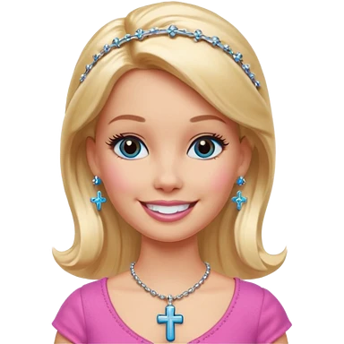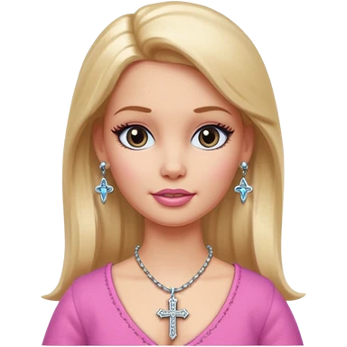 Barbie emoji with earrings and nose piercings and a cross necklace emoji