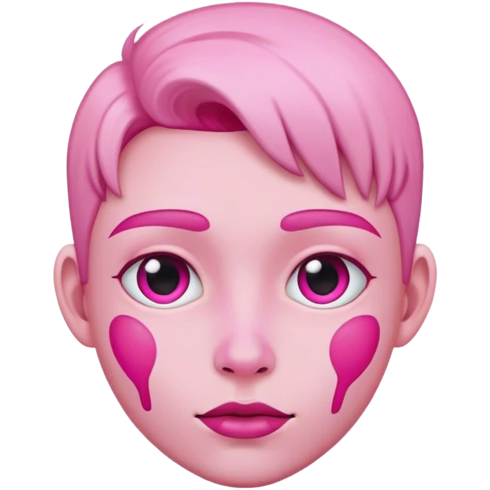 Pink face emoji with blue eyes with one hang under the face and one above emoji