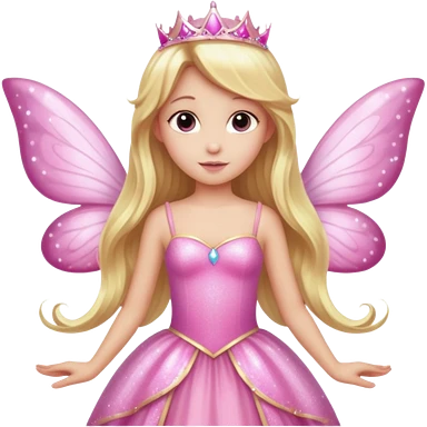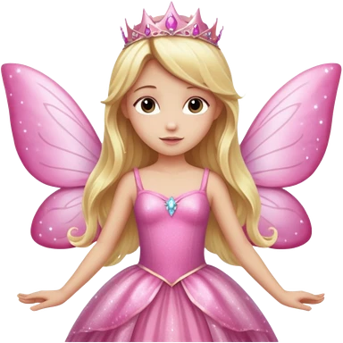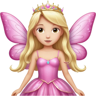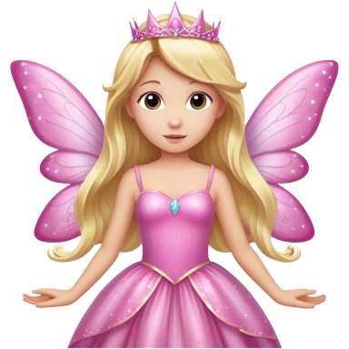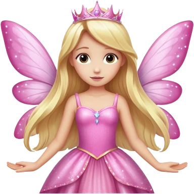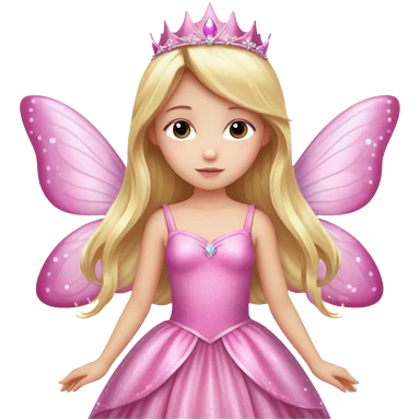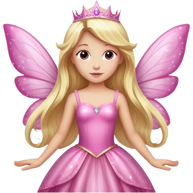 Long blonde hair pink sparkle princess dress large fairy wings emoji